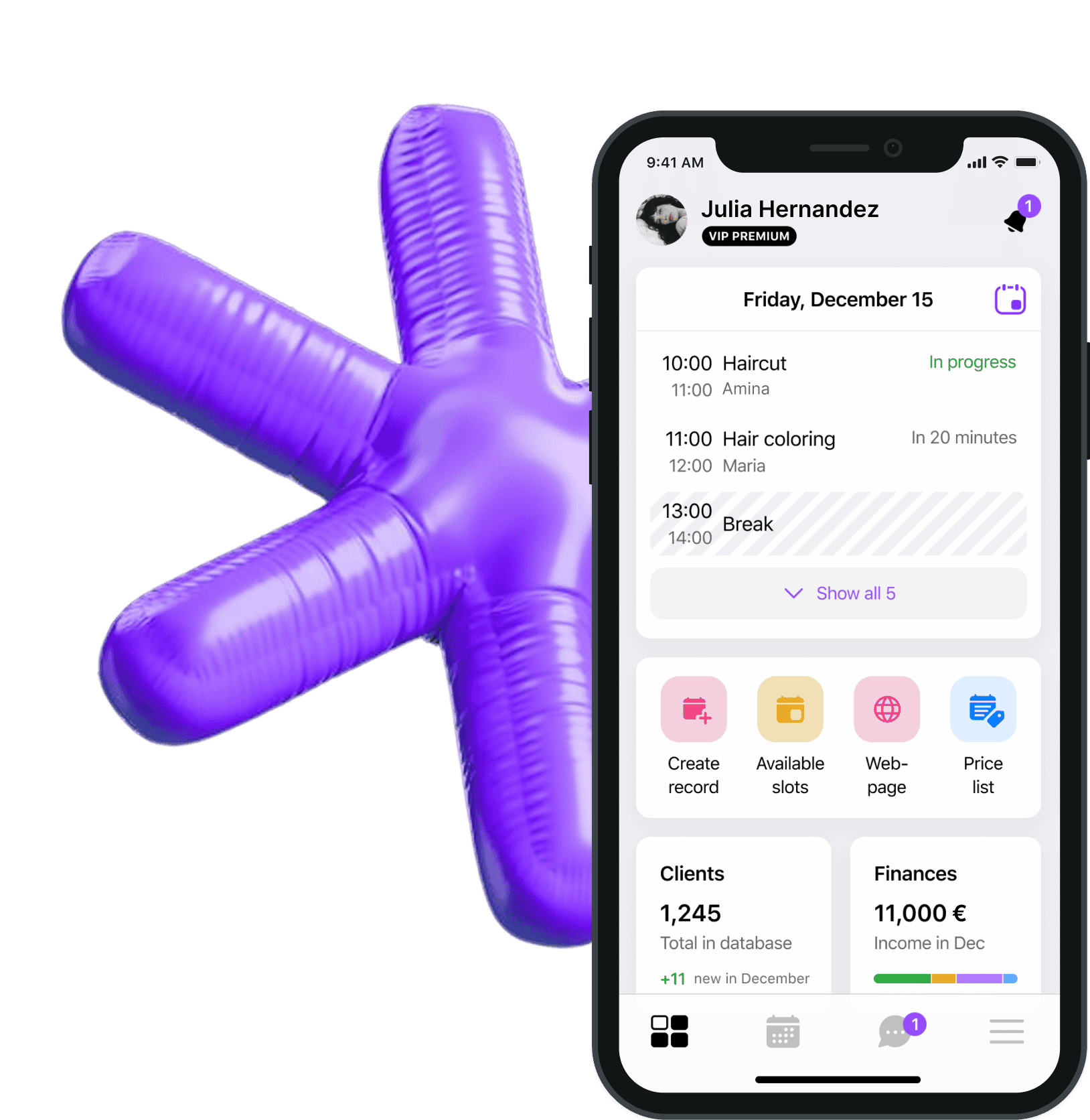 Client cards, appointment reminders, and income tracking